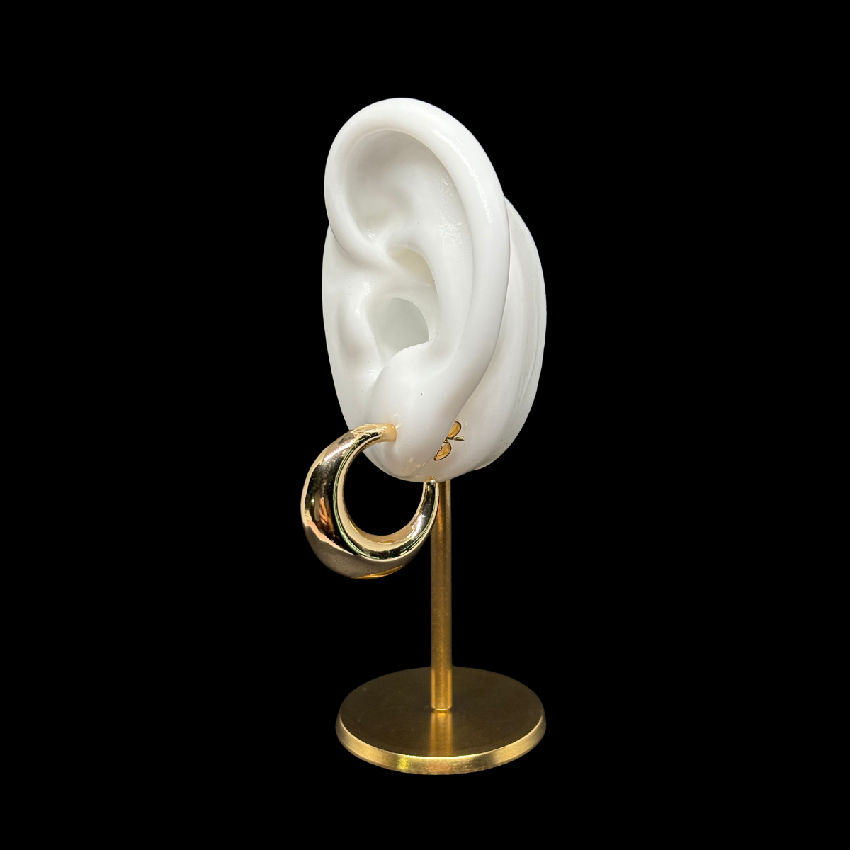 Radiating effortless elegance, the Halo Hoops embody Aurea’s signature balance of bold form and timeless simplicity. Their sculpted, crescent-like silhouette catches the light with every turn, creating a luminous glow that frames the face beautifully.