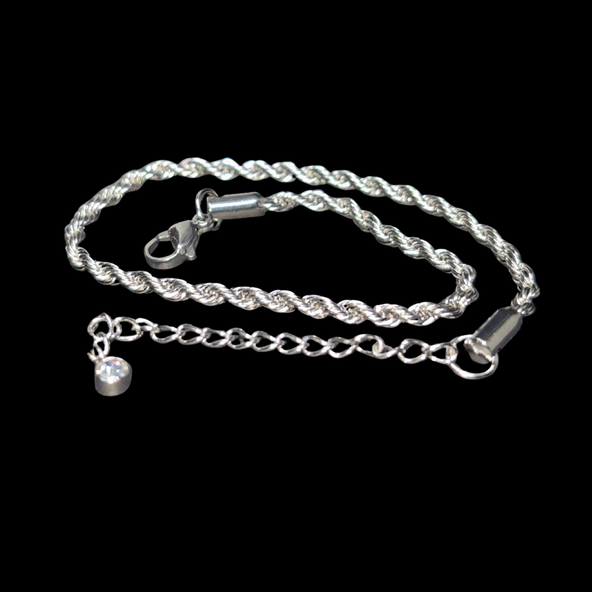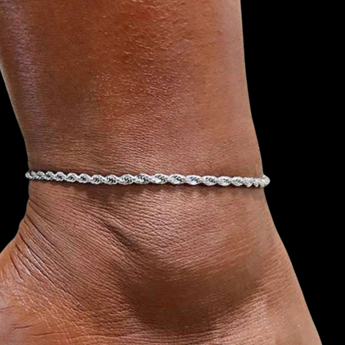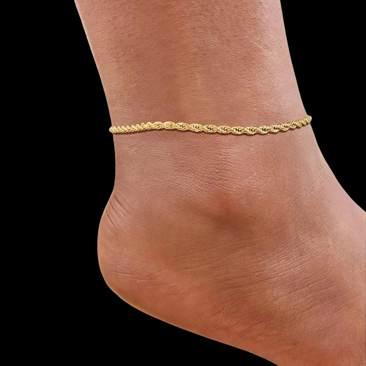 Gracefully twisted like the stem of a blooming flower, this stainless steel anklet adds a touch of timeless elegance to your everyday look. The delicate rope chain is both sturdy and stylish, crafted from high-quality stainless steel for long-lasting shine and resistance to tarnish.