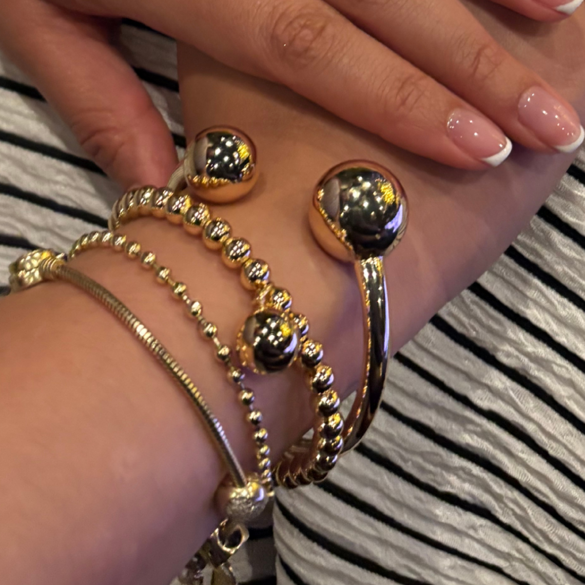 Minimalism meets celestial energy in the Luna Orbit Cuff. Designed with two perfectly polished spheres that seem to float effortlessly on your wrist, this piece blends sculptural elegance with everyday versatility. The open-cuff design makes it easy to slip on and off while offering a comfortable, adjustable fit.