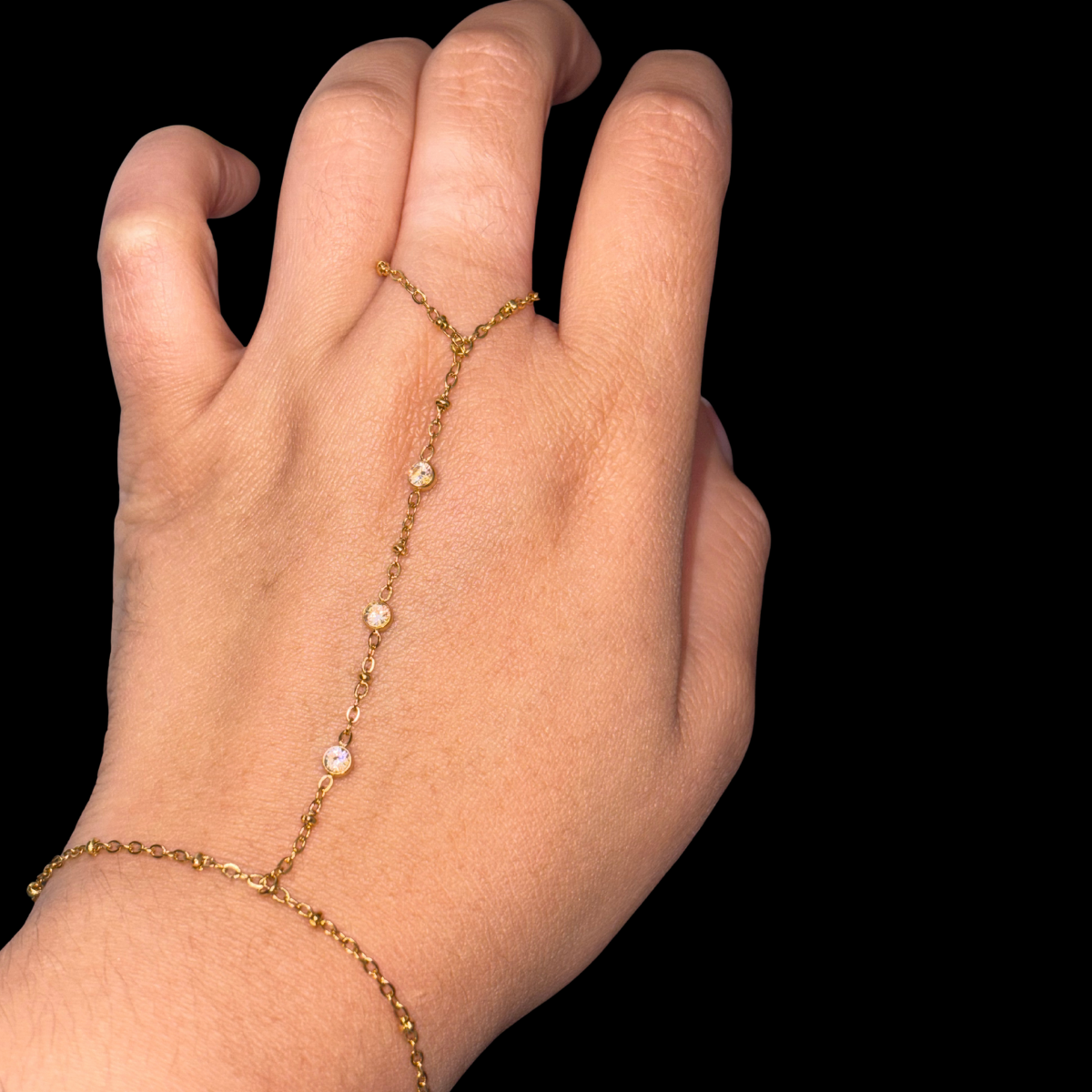 - Style: Hand chain with petite bezel-set crystals