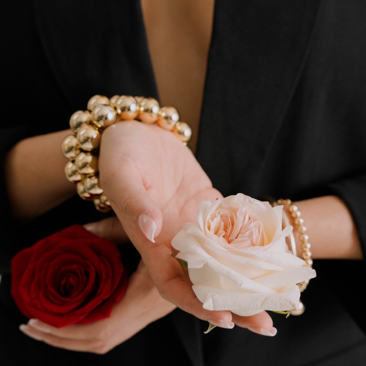 Wear all three together for maximum impact, style them separately for understated elegance, or mix them with other pieces for a curated stack that’s uniquely yours. With their smooth, high-shine finish and comfortable stretch fit, these bracelets are as versatile as they are striking — made for the modern woman who moves with confidence and style.
